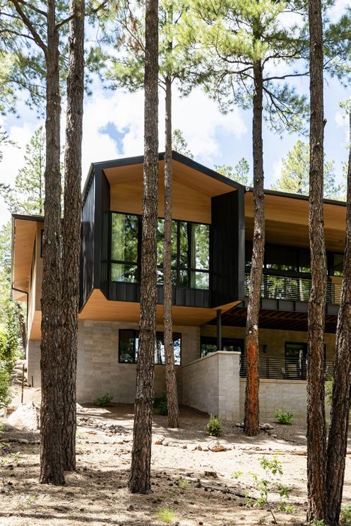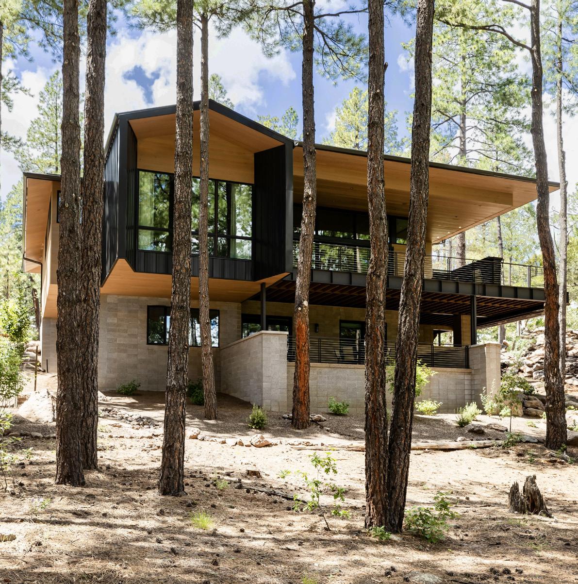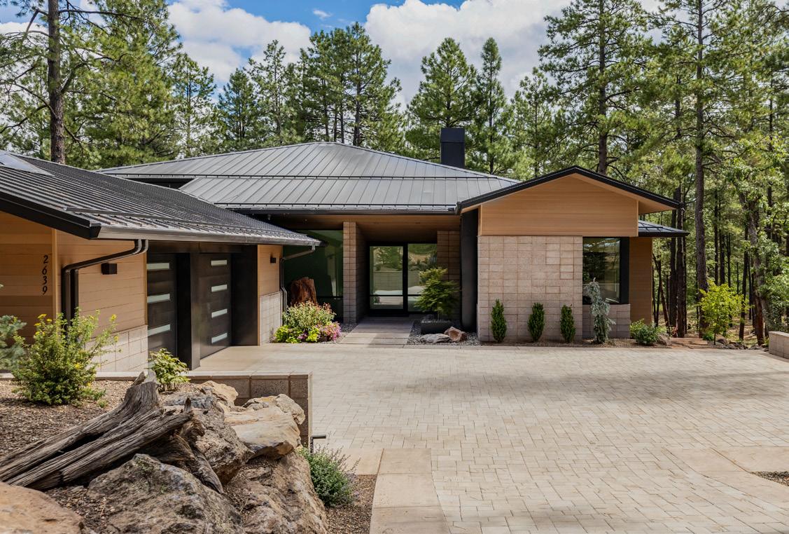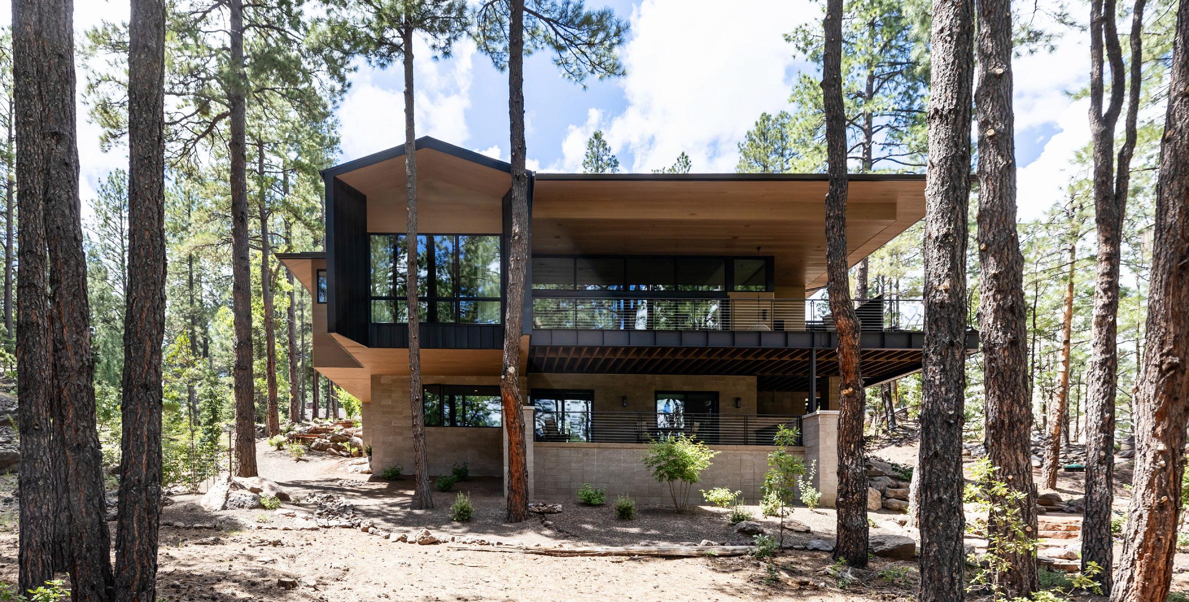 Nestled in the prestigious golf community of Forest Highlands, the Flagstaff Forest House is a contemporary residence that quietly harmonizes with its natural surroundings. Unassuming yet visually captivating, this residence is designed to seamlessly integrate among the trees, creating a tranquil retreat in the heart of the forest.