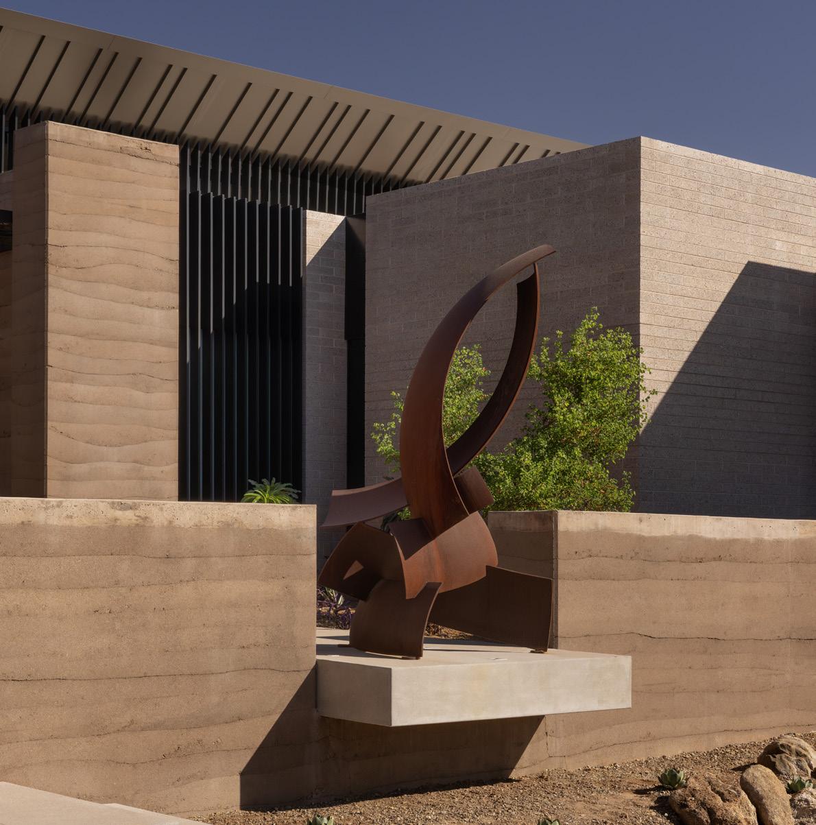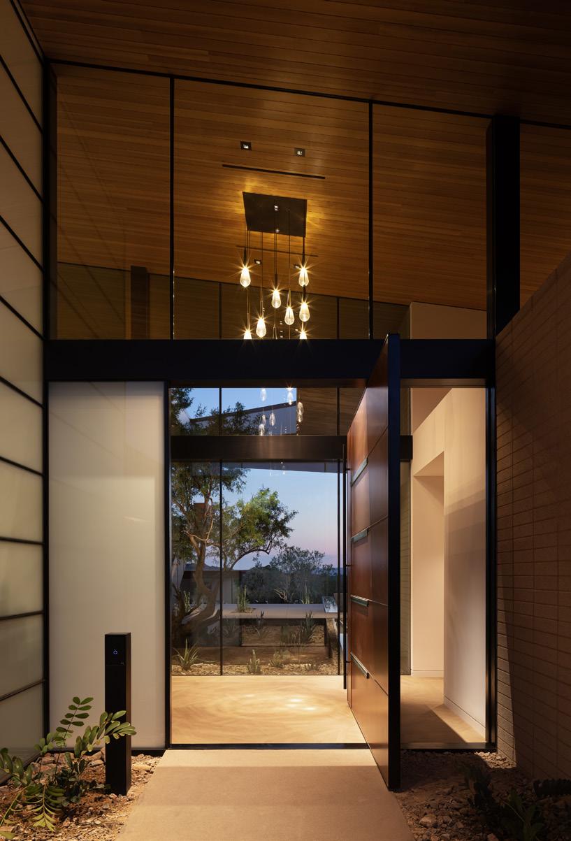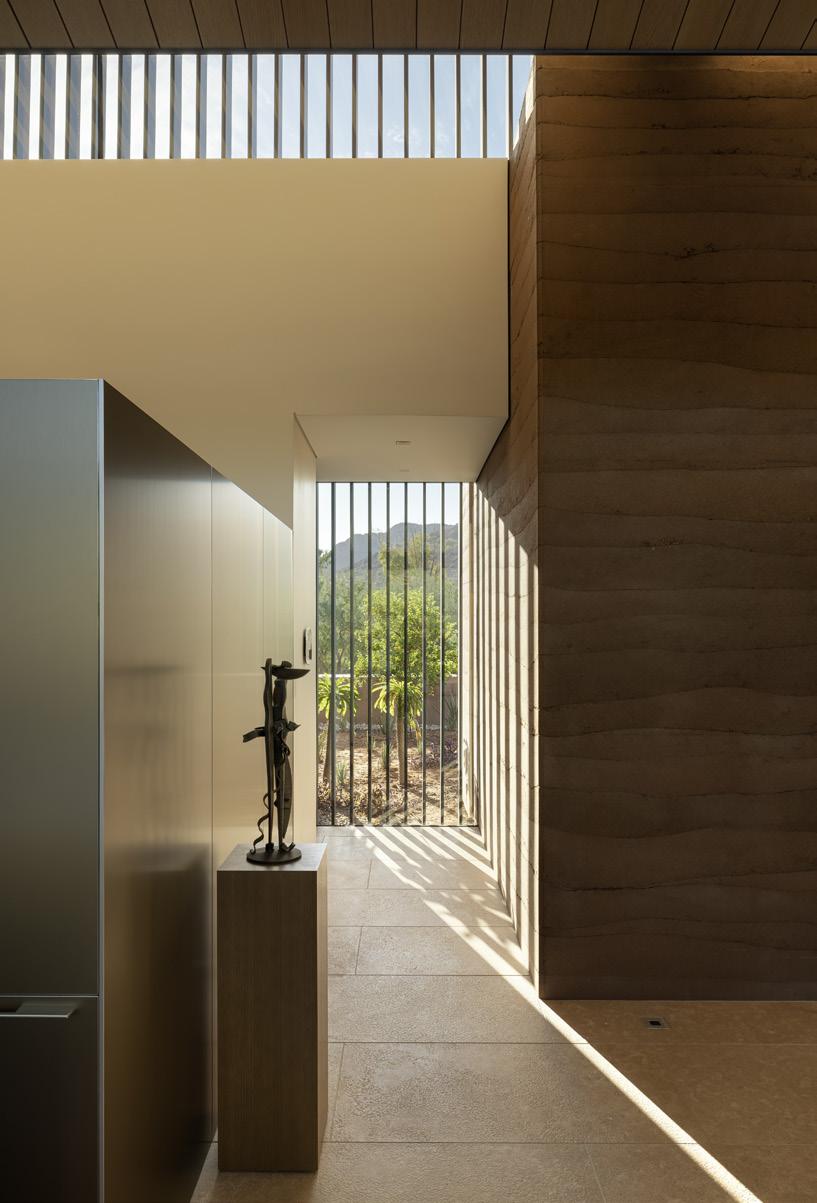 The front door is more than an entry; it creates a stunning visual statement while fostering a sense of place that celebrates the interplay of light, materiality, and nature. It frames the passage from exterior to interior as a moment of transition, where the rawness of the desert meets the crafted shelter of the home.