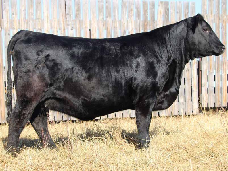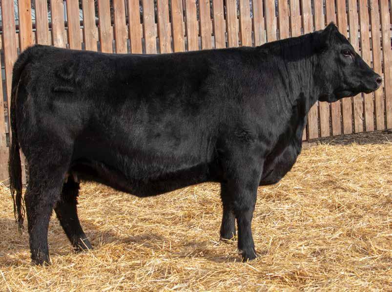 Everblack Annie 8M comes from a trio of flush sisters that are outstanding. 2 of the 3 were members of the champion pen of heifers at the Vermilion fair this past summer. A full sister, Everblack Annie 90J, was the top selling female through this sale in 2022 for $20,000 to Elk Ridge Farms. Annie 8M comes from a long line of productive cows going back 31 years to the donor cow, Annie 13A, who was the top selling female in our herd reduction sale in 1995. Fast forward to 2008 when the next donor, Annie 92U, was born. She was an elite cow in the angus database and was one of the more productive cows we have raised. We then decided to flush Annie 49F as this mating has worked so well. Annie 8M has a huge spring to her rib, she’s sweet fronted with a nice head and very hairy. The sire, BAR-E-L Stamina 11F has risen to the top of our program the old-fashioned way, by proving his worth. His daughters are making beautiful cows, lots of middle, ample performance, and sweet udders. The sons have been very well received by the cowboys in our spring bull sale. An added highlight would be the service to our junior calving ease sire, 66 Ranch Water 92M who commanded $30,000 last spring.