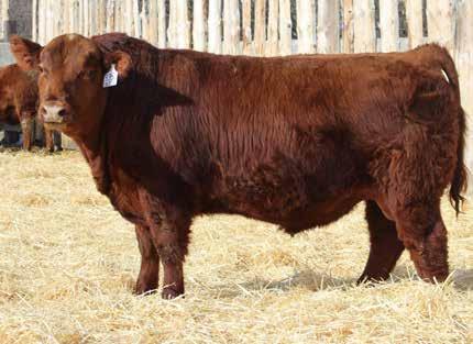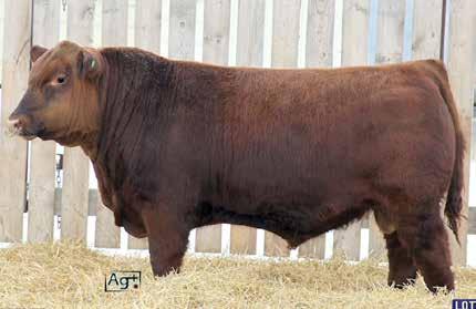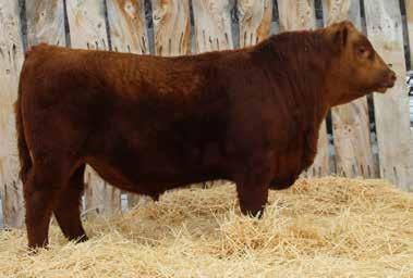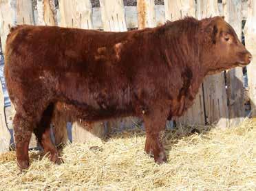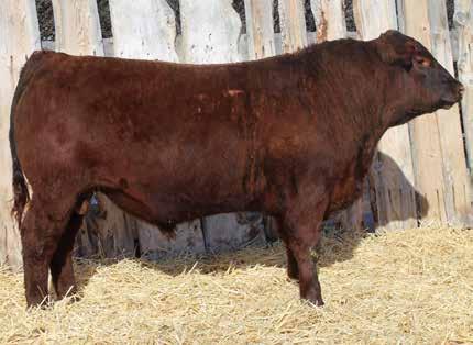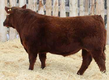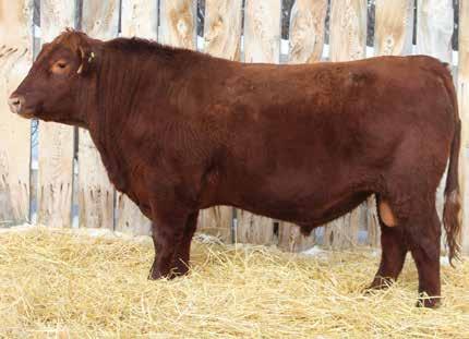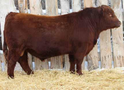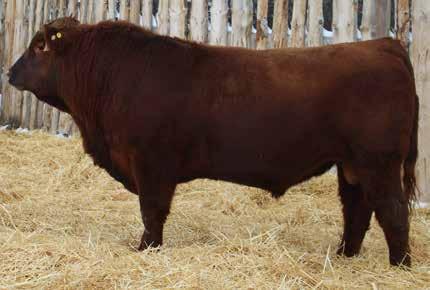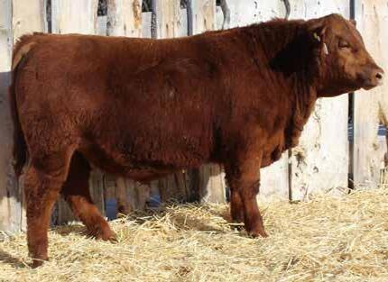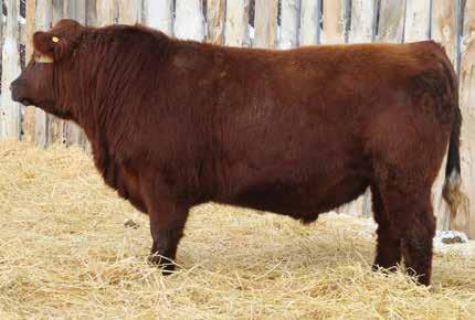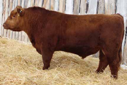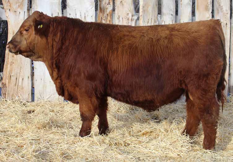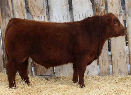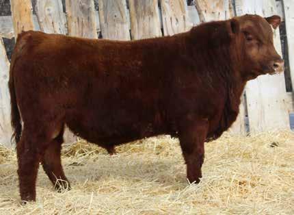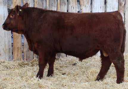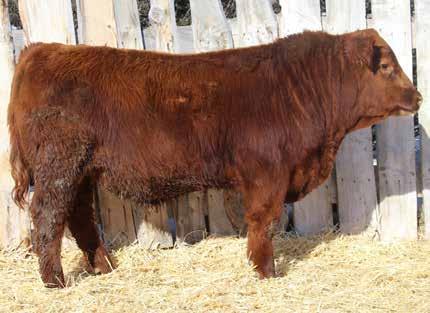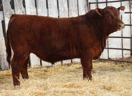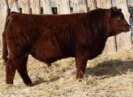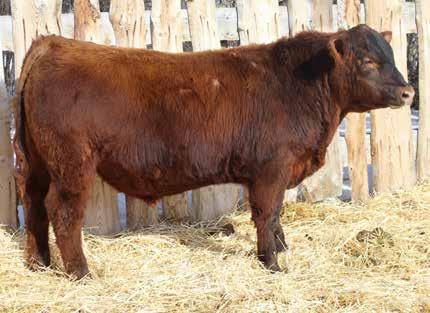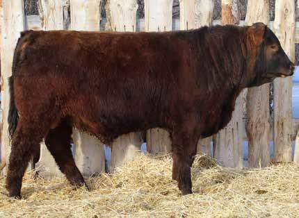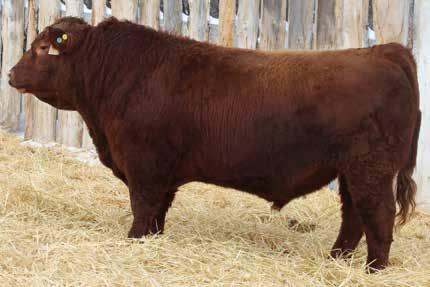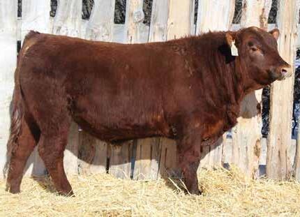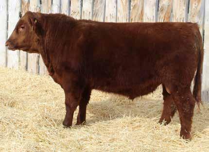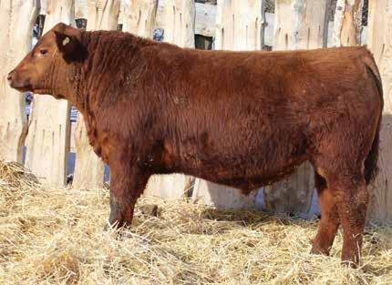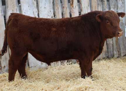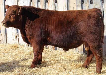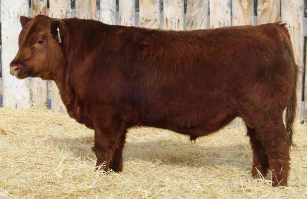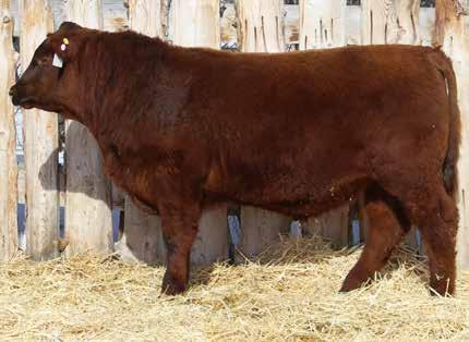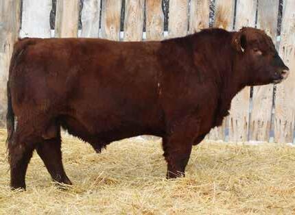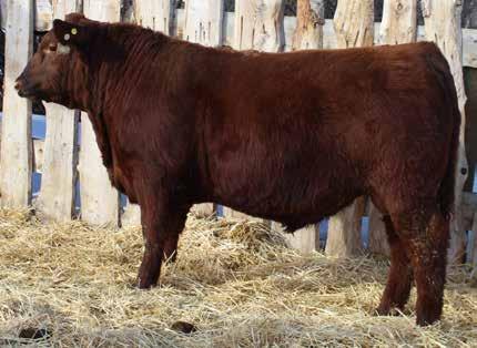Here’s a dark red bull. His moderate dam always brings home a good solid calf in the fall. He was the third highest gaining bull after weaning. Weaning index 111.