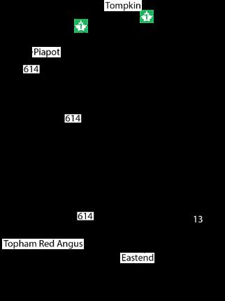 From the town of Eastend, turn north on the grid road 614, go 9 km, turn west/left at the Topham Red Angus bull sign.
