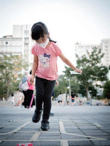「公園綠遊記-fun輕鬆 只park你不玩」活動當天, 人潮眾多,許多公園附近住民的親子或爺爺、奶奶帶 著孫兒攜手同樂。透過老地圖,讓在地居民回憶舊時 的點點滴滴,另一攤位的懷舊童玩則不分世代,「尪 仔標」、「干樂」、「跳房子」等古早味童玩挑戰, 喚起長輩的生活記憶,也讓孩子們玩樂地興奮不已。 跨世代同樂:在遊戲間擾動社區 在跨世代的同樂活動中,小組設計「大聲說!我們想 要的...的公園」牆面提供公園想像的票選活動,提案 包含:「可以野餐」、「有可食地景」、「有才藝舞臺」 等,讓大小朋友投下他們心目中想要的公園,組員從 對談中,獲得許多來自孩童、父母及長輩的觀點與經 驗,有的對於公園的歷史轉變感觸良多,有人分享在 公園廁所使用不便的感受,有人談及對社宅規劃的想 法與隱憂,還有一對家長現場就開始對於公園想像提 案進行辯論。