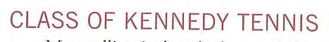 Most celling is chat the boys aspi re to wh a t cheir female counterparcs already h ave-to be the class of Kennedy tennis. Yet even the league champs have been impressed with what the boys did chis year. Some vars i ty players such as Lindsay Burke even spent some time working with the boys to improve their skills
