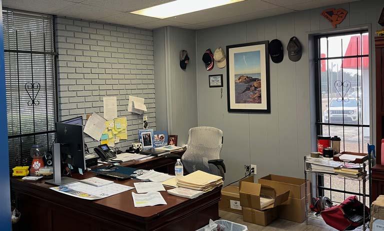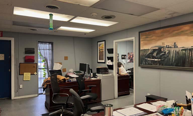 OFFICE: Existing buildout includes three private offices, men and women’s restrooms, break room, vending room, and bullpen area
