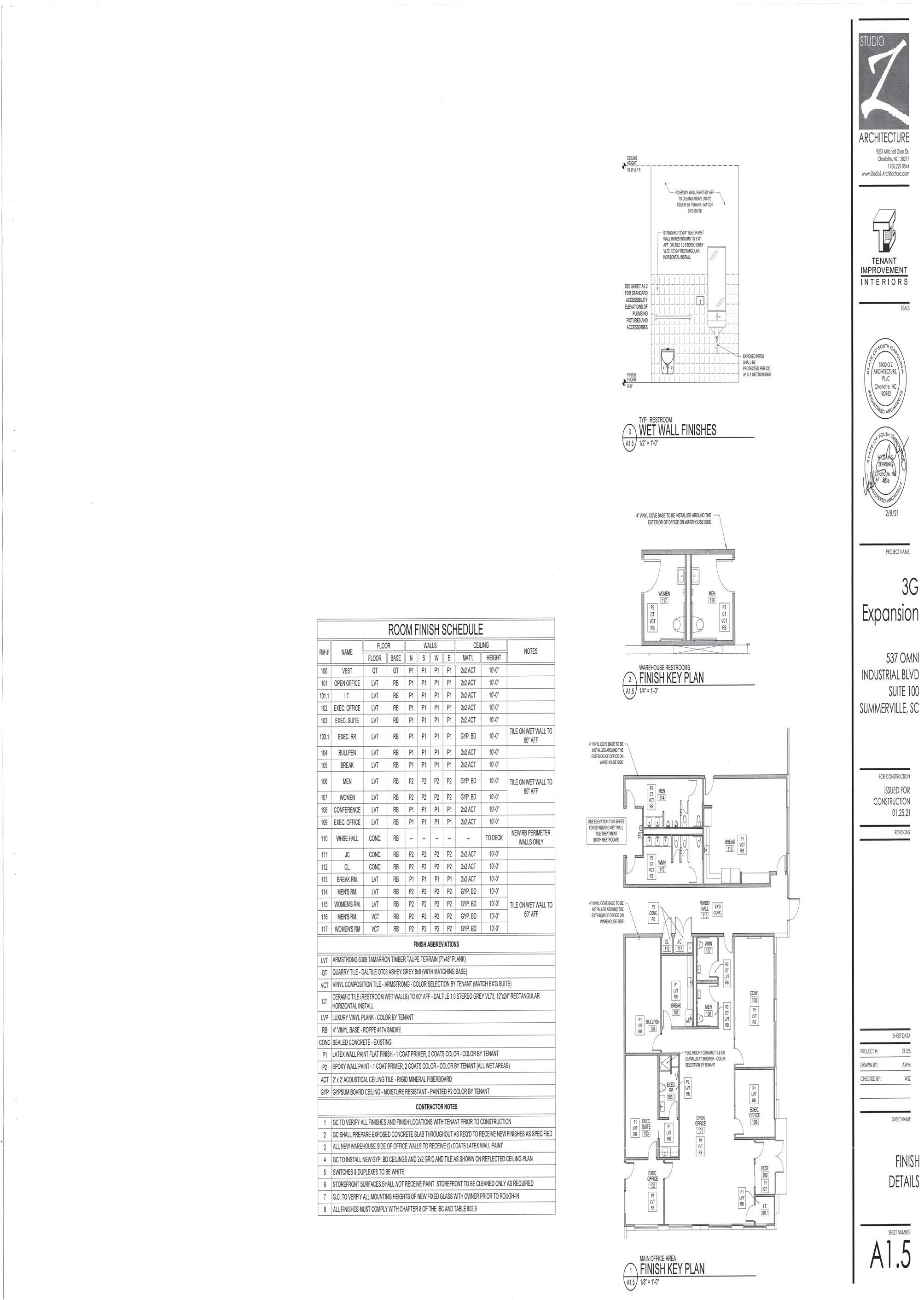 FLOORS: 7” reinforced, 4,000 psi, Lapidolith floor sealer and caulked floor joints