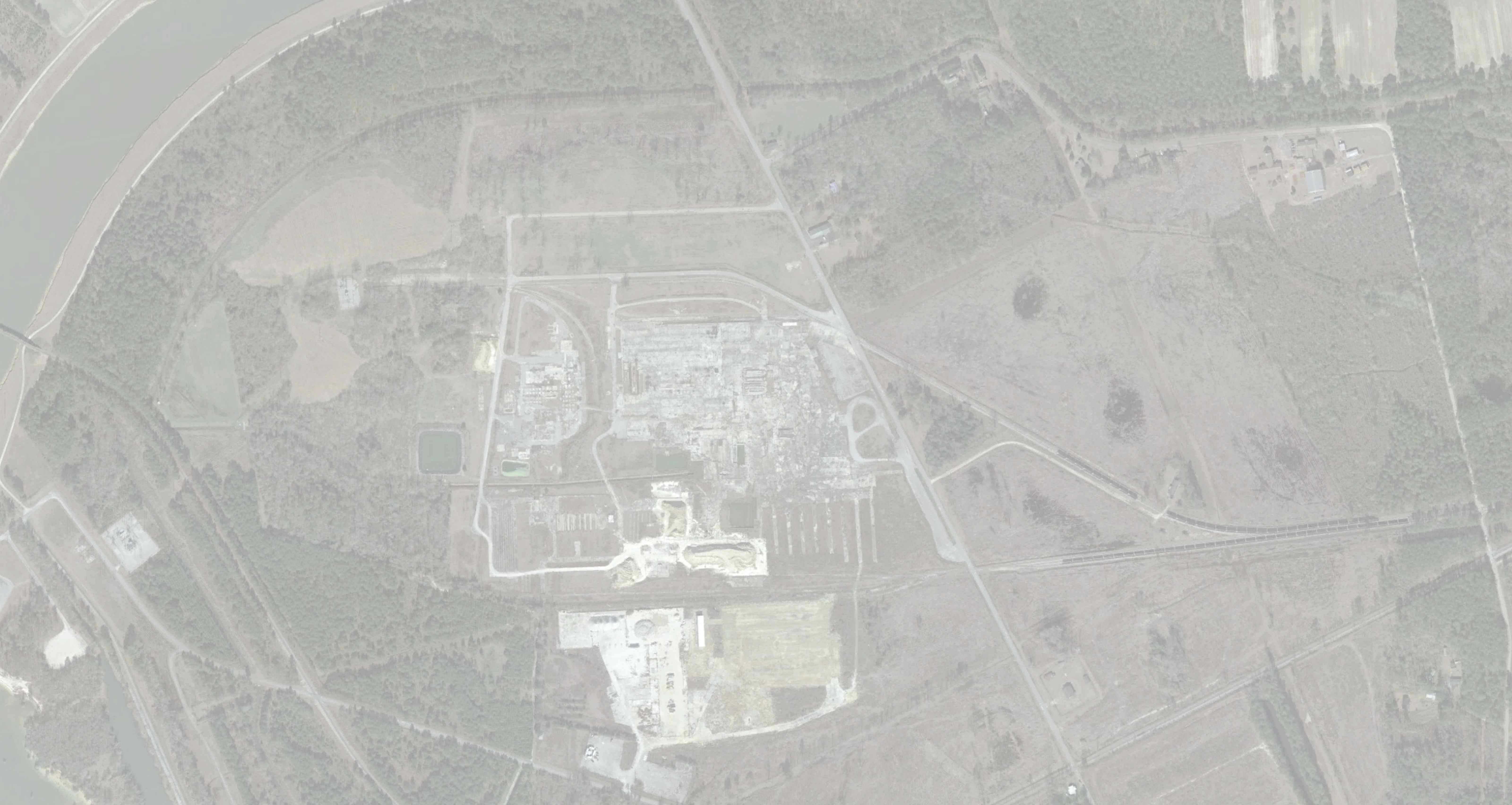 The site was owned and used by Georgia Pacific which operated a plywood plant, a studmill and a particle board plant. The majority of these structures were razed in 2017. The concrete foundations and pads are largely present.