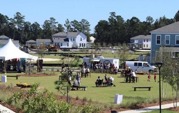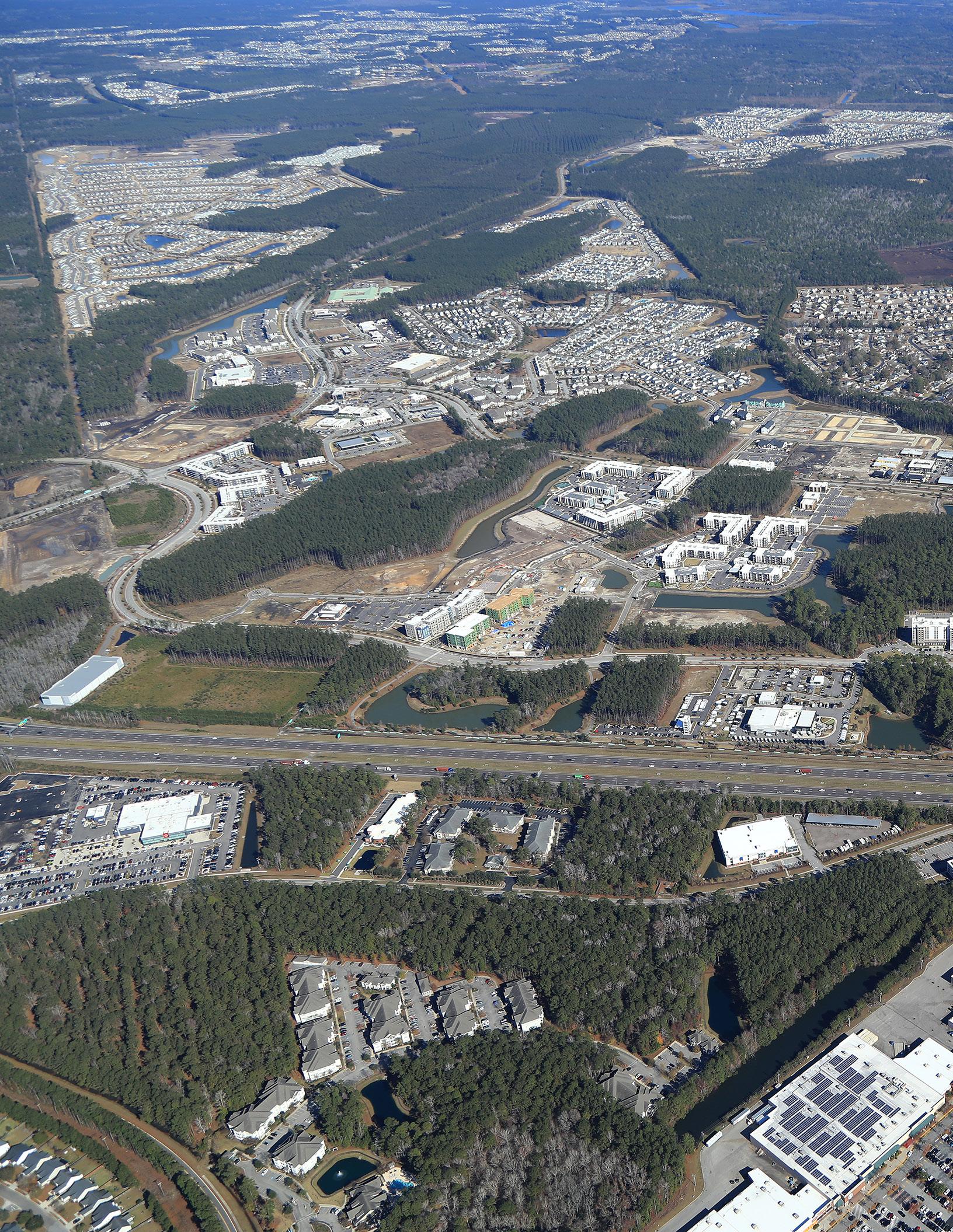 Nexton is designed to live and work like a town. It mixes together apartments, entertainment, homes, hotels, offices, parks, restaurants, shops, and schools. Tying everything together with a network of trails and pathways.