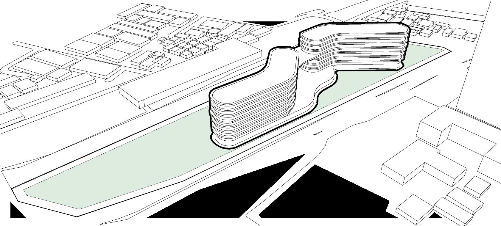 Efisiensi pengembangan area hijau pada tapak untutk meningkatkan kualitas dan kesehatan lingkungan.