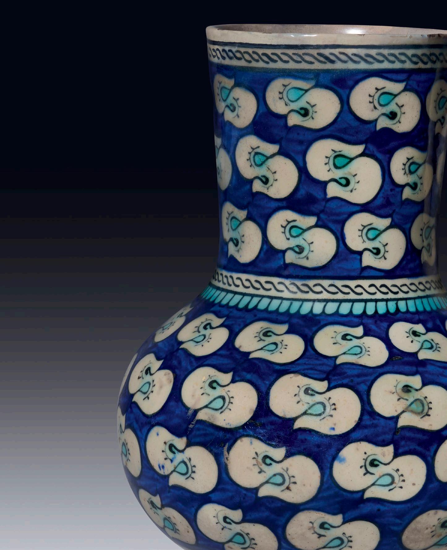 Iznik jugs in the form of the present piece were first produced in circa 1520. See, Julian Raby & Nurhan Atasoy, Iznik: The Pottery of Ottoman Turkey, Alexandria Press, London, 1989, p. 39. The present jug is an extremely rare and important example of early Iznik ceramic production, displaying true iconic aesthetic and presence.
