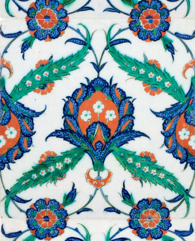 The present tiles are rare and important examples of the art of Ottoman Iznik pottery with their perfect design, vibrant colours and brilliant firing.