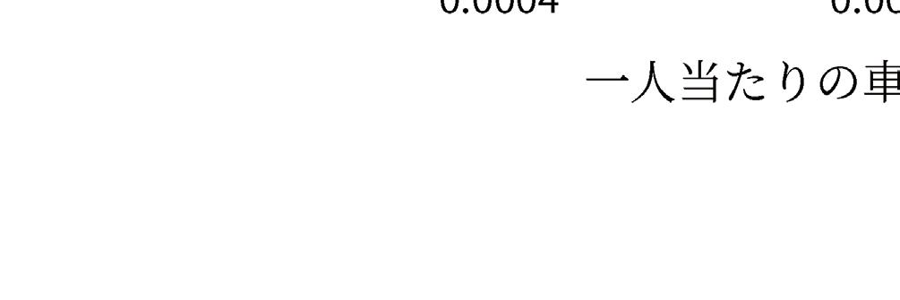 一人当たりの車両数が増えると、次のような結果が生じる。(1)空車が増加す ることにより待ち時間が下がる。結果として時間コストを減少させる。(2)近傍 の車両が配車することができるようになり、移動時間を短縮することができる。結 果として時間コストを下げることにつながる。(3)車両を増やすことにより、車 両に対する初期投資が増える。結果的に利用者に対して金銭コストが上がる。