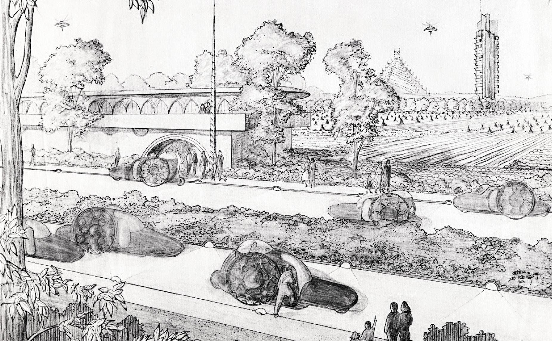 フューチャーラマは前述の自動車黎明期の時代に対する都市計画とは異なり、自 動車導入による利点と欠点を理解した上での自動車全盛期に向けた計画であると筆 者は考える。