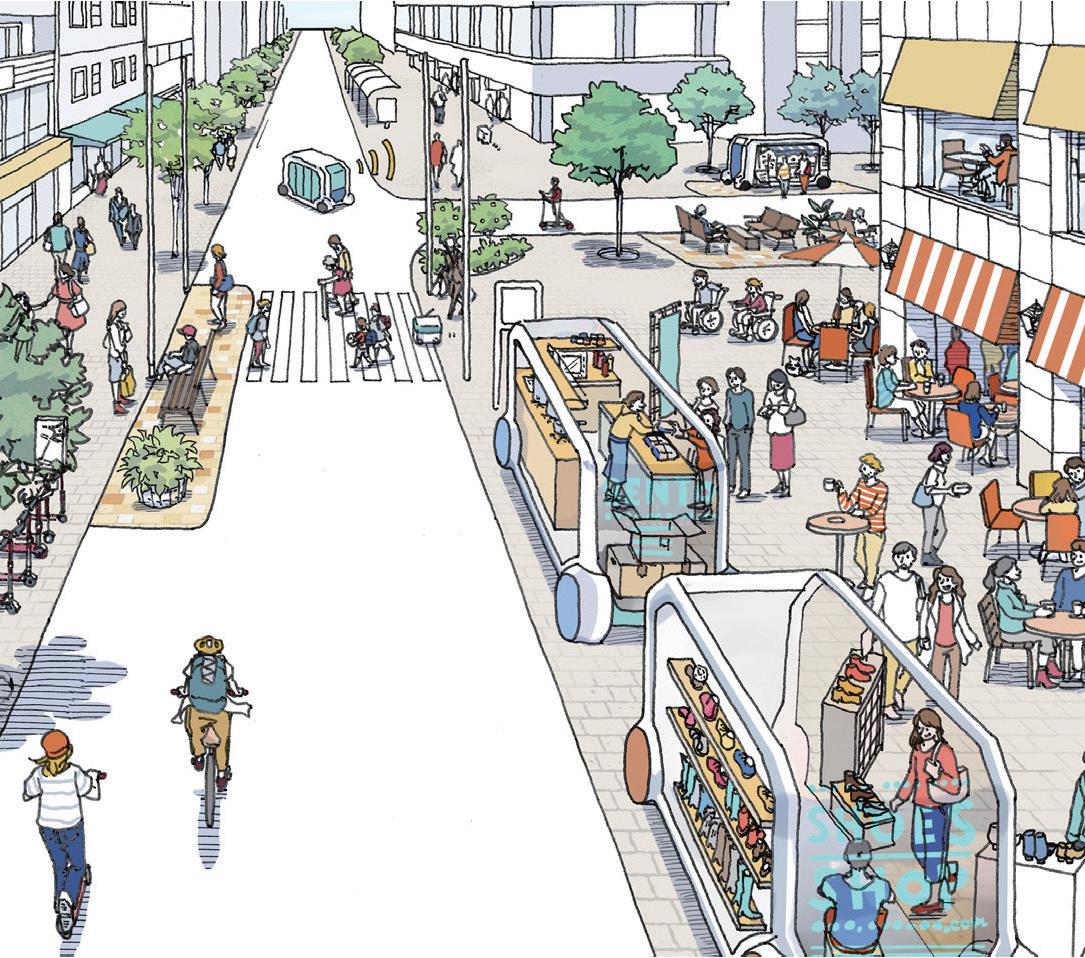 転サービス(3)歩車空間の再編成(4)自動運転に対応した建築様式である。特