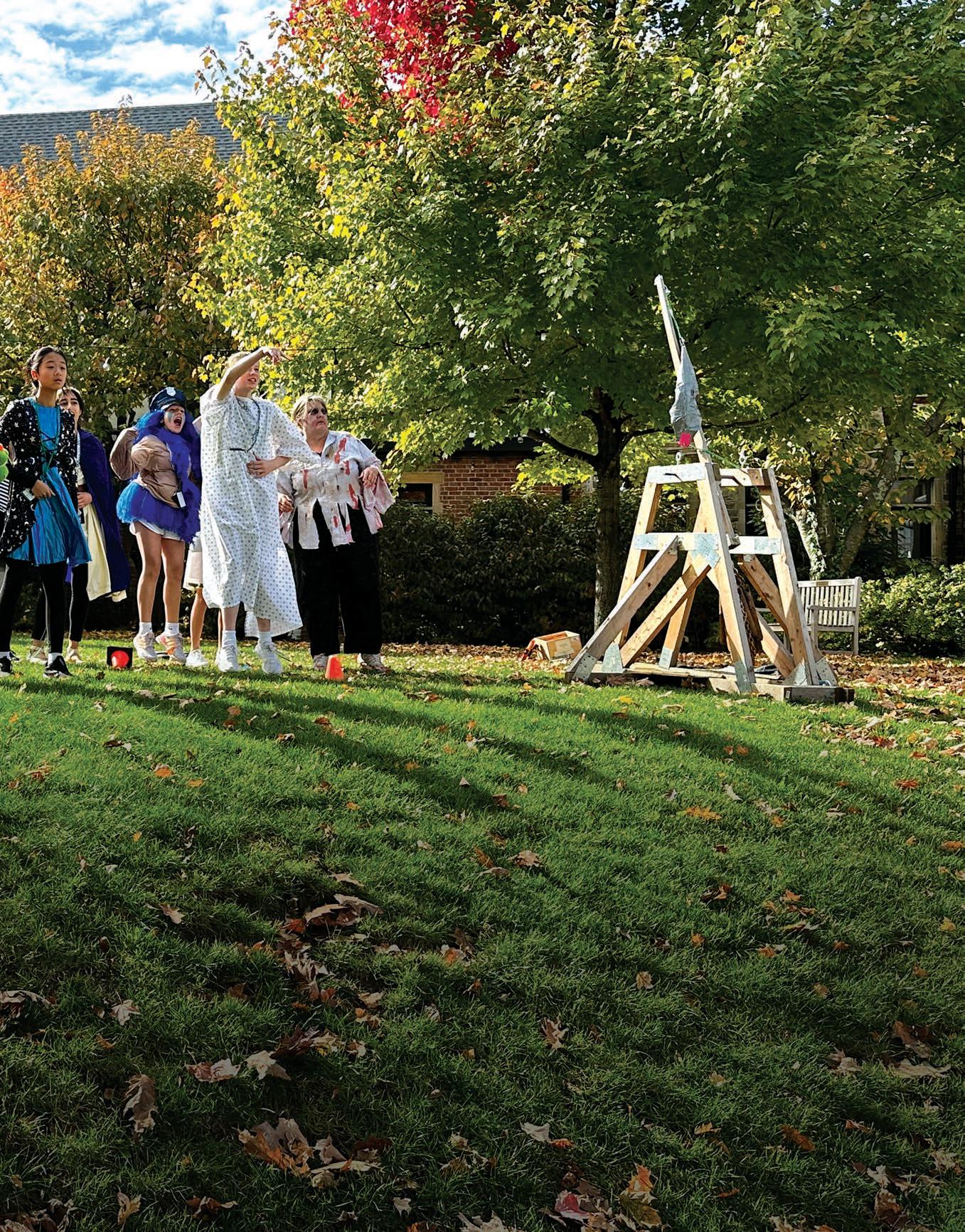 Over the last seven years, the great pumpkin launch has become one of the most anticipated events on campus, with all 18 Middle School advisories — 150 students — competing to lavishly decorate and then fling their orange globes the farthest, to peals of laughter and encouragement from fellow students, teachers, and administrators.