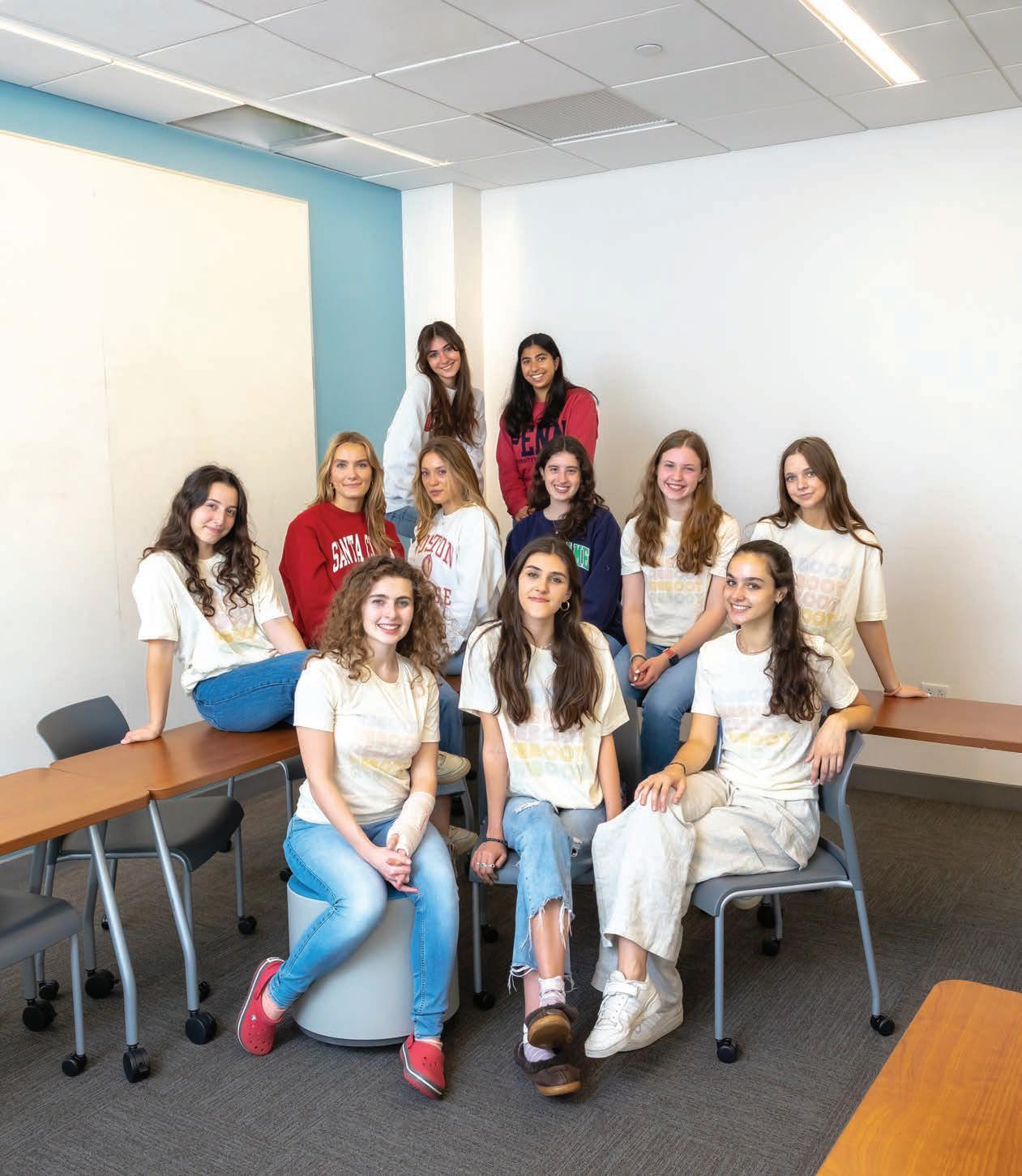 Margo D’Angelo ’23, Molly Daab ’23, Olivia Santoro ’23, Catherine Paris ’23, Scarlette Liftin ’25, Elizabeth Khidekel ’23; (front, l–r): Emily Shewchuck ’23, Luna Markels ’23, and Sophie Cozine ’23