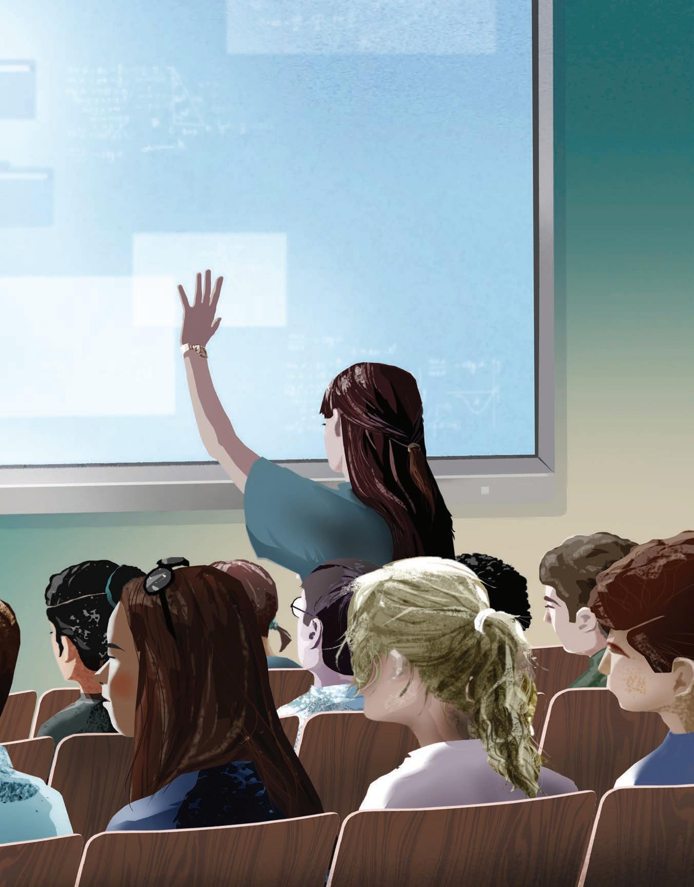 Planting girls squarely in the thorny crossroads of disciplines is exactly what Evelyn Hanna sought to do four years ago when she designed an Upper School elective called Engineering, Ethics, and Entertainment. In her prior role as Director of Curricular Innovation and STEM and now Interim Director of the Upper School, she welcomes all interested students in Grades 9–12 (no prerequisites!) to better understand and wrestle with machine learning, AI, and design-thinking protocols as well as the biases that can creep into their use. More important, by situating the class in the Innovation Lab, where Arduino microcontrollers, 3D printers, laser cutters, and various programming platforms are at their disposal, she doesn’t just nurture complex conversations; she creates a space for students to get their hands dirty — to experiment, code, fabricate, fumble, revise, and struggle together.