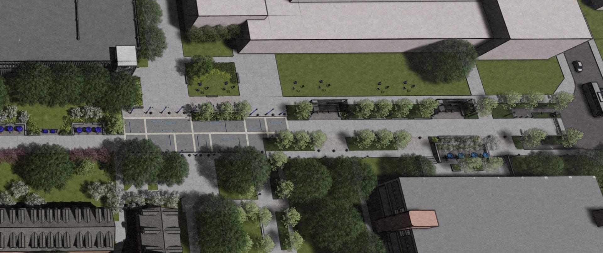 A construction site for years, the Rose Street corridor between Columbia Avenue and Huguelet Drive has opened as Alumni Commons, a central campus gathering spot for students, alumni, faculty and staff.