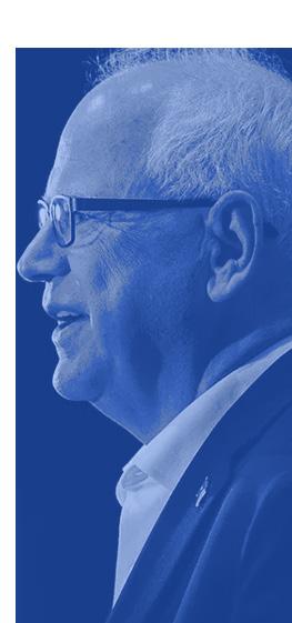 Gov. Tim Walz of Minnesota, grew up on his family farm in Minnesota. He is a leader who has always prioritized the well-being of his constituents. As a former educator, a 24 year member of the National Guard and a high school football coach, Walz understands the importance of community.