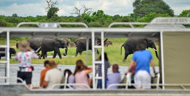 Renowned for the magnificent breadth of African wildlife along its flanks, a Chobe River cruise is one of the best choices imaginable for nature and animalloving cruisers. Quite different to your typical inland safari, a Chobe cruise ship will make port at notable strategic areas across the Chobe National Park, leaving you plenty of time to go ashore on day trips to spot fantastic wildlife. With a vibrant range of full-year and migratory residents alike, your trips into this verdant land will give you fantastic chances to see African elephants, hippos, cheetah, leopards, African wild dogs, zebra, and so much more.