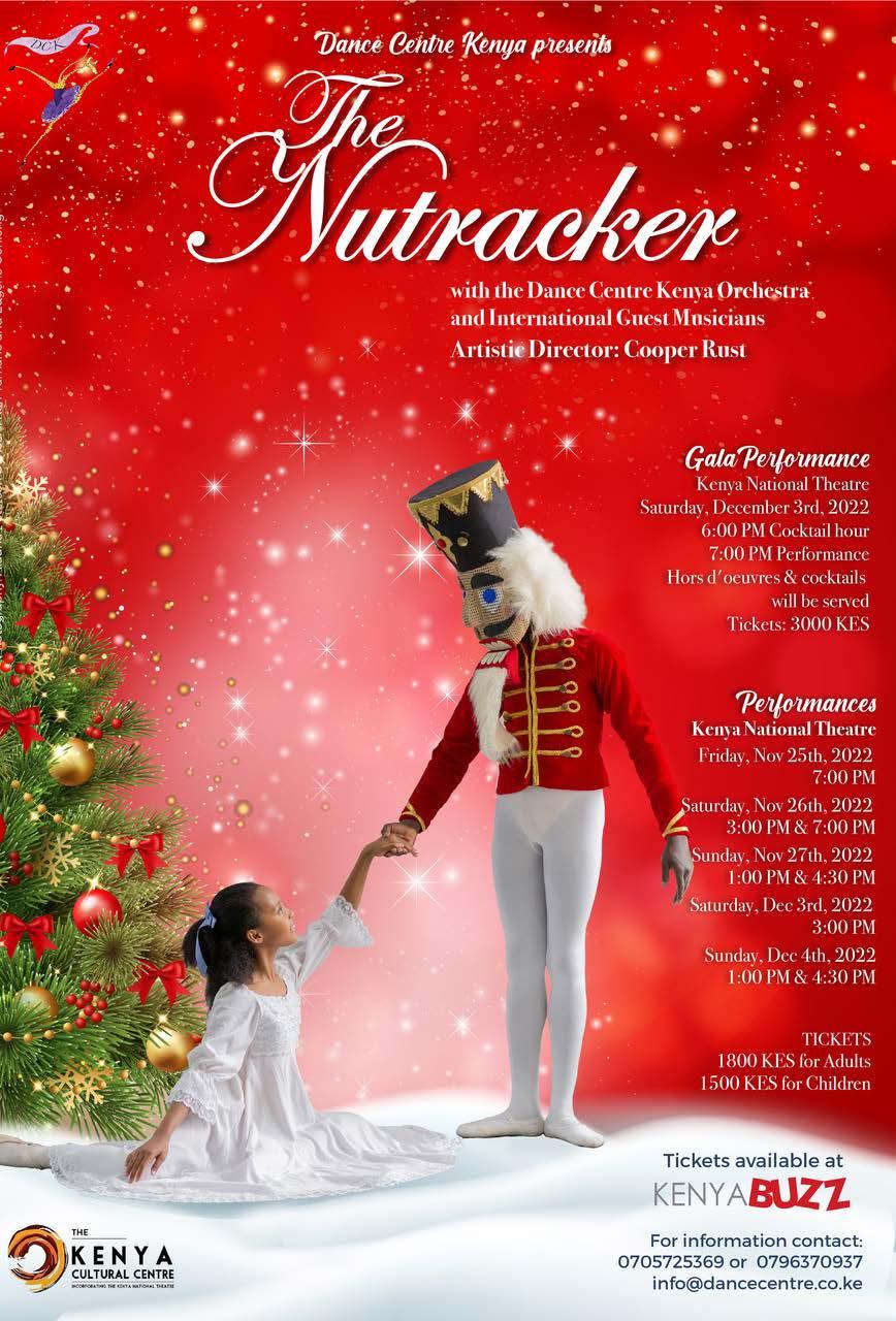 The Nutcracker(include poster for this): Kenya National Theatre, November 25th - De cember 4th. Dance Centre Kenya Orchestra and International Guest Musicians presents The Nutcracker. 0103 132337 / 0791 478090