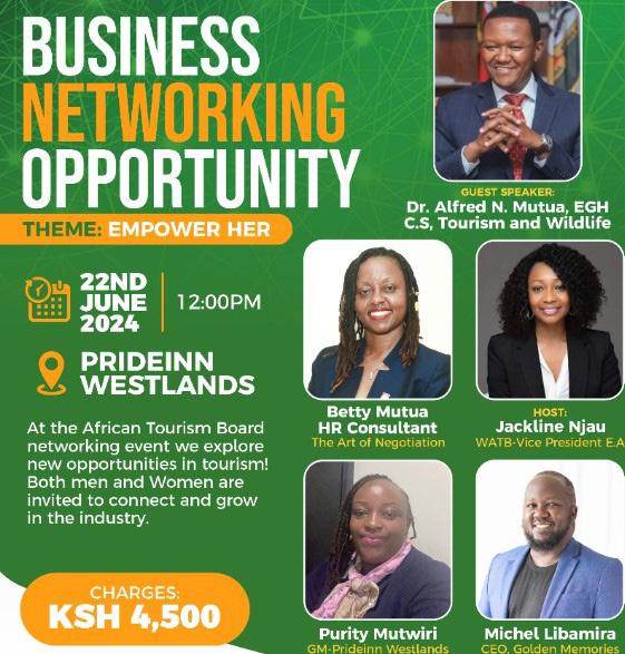Business Networking Opportunity: Pride Inn, Westlands, 22nd June, 12 pm. Connect with industry leaders, explore opportunities, and gain insights into the future of African tourism.