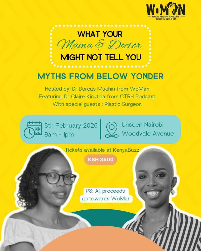 Myths from Below Yonder: UNSEEN Nairobi, 8th February, 9 am. Join Dr. Muchiri from WoMAN, alongside Dr. Claire Kinuthia for an unforgettable event that dives into the hidden truths about our most overlooked body parts. 0791 478090