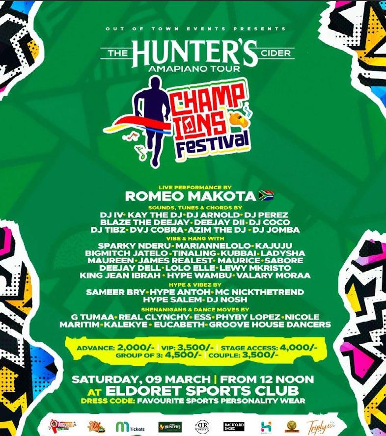 The Hunter’s Cider Amapiano Tour: Eldoret Sports Club, 9th March, 12 pm. The tour goes back to the home of champions bigger and better!