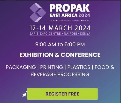 Propak East Africa 2024: Sarit Expo Centre, 12th14th March, 9 am. Don’t miss out on the ultimate expo and conference for packaging, printing, plastics, and processing in East Africa!