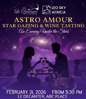 Astro Amour: Le Decanter, 21st February, 5.30 pm. Enjoy a guided telescope stargazing session paired with wine tasting and curated love bites, all beneath the stars. 0729 867403
