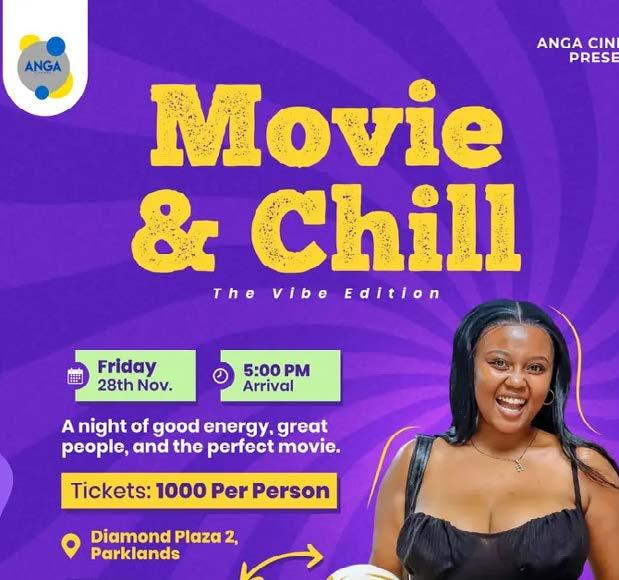 Movie & Chill: The Vibe Edition: Anga Diamond Cinema, 28th November, 5 pm. A night of good energy, good people and the perfect movie, hosted by Hilda AKA Online Bestie. 0791 478090
