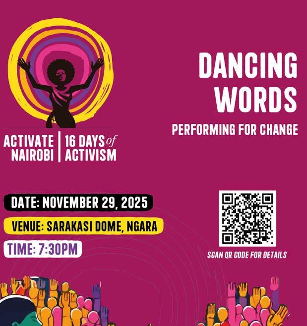 Dancing Words: Sarakasi Dome, 29th November, 7.30 pm. Experience an evocative performance blending dance and literature to celebrate women’s resilience.
