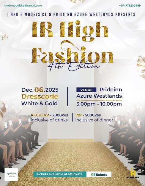 IR High Fashion: PrideInn Azure Hotel, 6th December, 3 pm. Guests will step into a glamorous showcase in White and Gold celebrating fashion and unforgettable experiences.