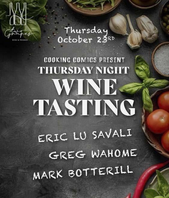 Thursday Night Wine Tasting: Two Grapes Wine and Friends, 23rd October. The incredible Cooking Comics chefs will curate a five-course tasting menu paired with exceptional wines, all inspired by classic literature!