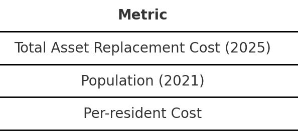 Our infrastructure is worth $7.7 billion. That equals about $50,000 per resident if we had to replace everything today.