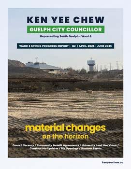 Published every three months, these reports step back to summarize key policy discussions, neighbourhood issues, and major initiatives that have progressed over the previous quarter. They provide additional context on the fles shaping Ward 6 and the City of Guelph.