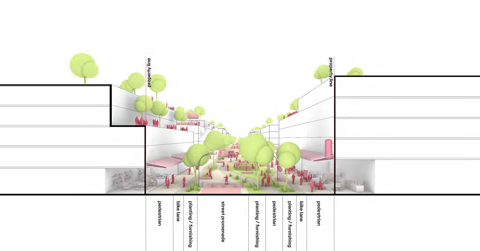 Accessible park spaces are provided centrally to the neighbourhoods in the form of Park Play Corridors, serving as vital connective pathways that integrate community amenities. Designed with flexibility, these pathways can be adapted to accommodate various planting and programming needs, enhancing both accessibility and engagement. By providing inviting and multi-use spaces, these corridors strengthen neighbourhood connectivity while supporting recreation and social interaction all within walking distance of residents.
