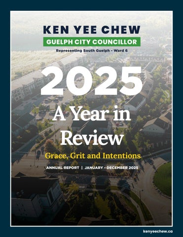 Published once a year, the annual report brings together the major fles, decisions, and community issues that shaped the past twelve months. It provides a broader refection on the direction of the city and the priorities guiding my work as your councillor.