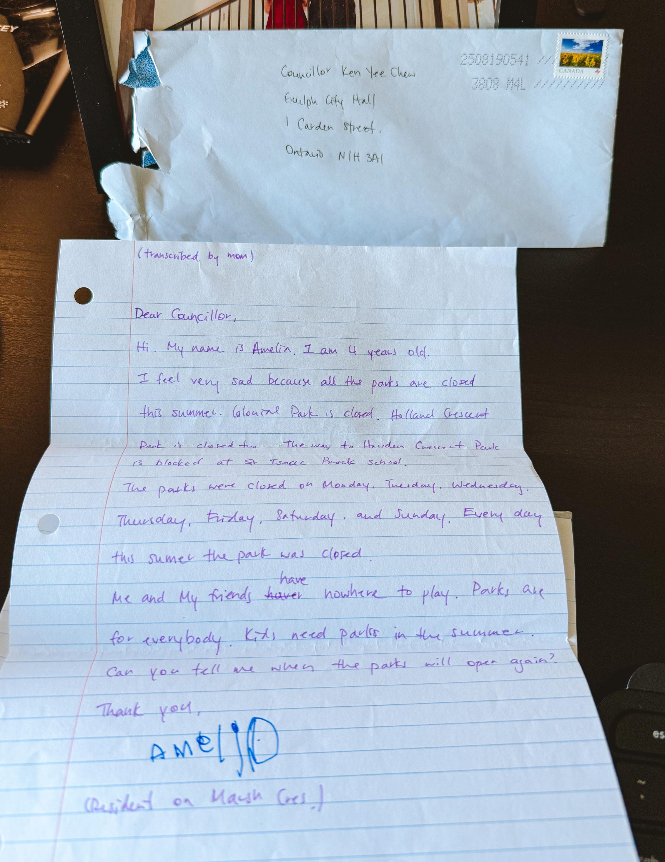 Back in July, Amelia, a young girl in the South End, wrote to me to share how sad she was not to have nearby parks to play in this past summer. I know many families felt the same frustration, especially when it looked like no work was happening after the old equipment was removed.