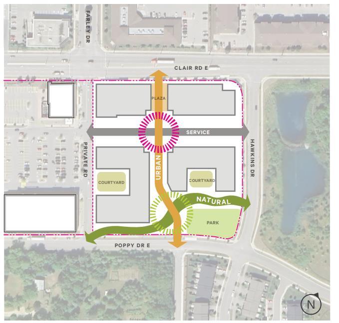 The plan features a connected street and block pattern that supports efficient servicing, snow clearing, emergency access, and accessibility for all users. It also includes thoughtfully designed open spaces, such as naturalized linear parks inspired by the trail experience in Westminster Woods.