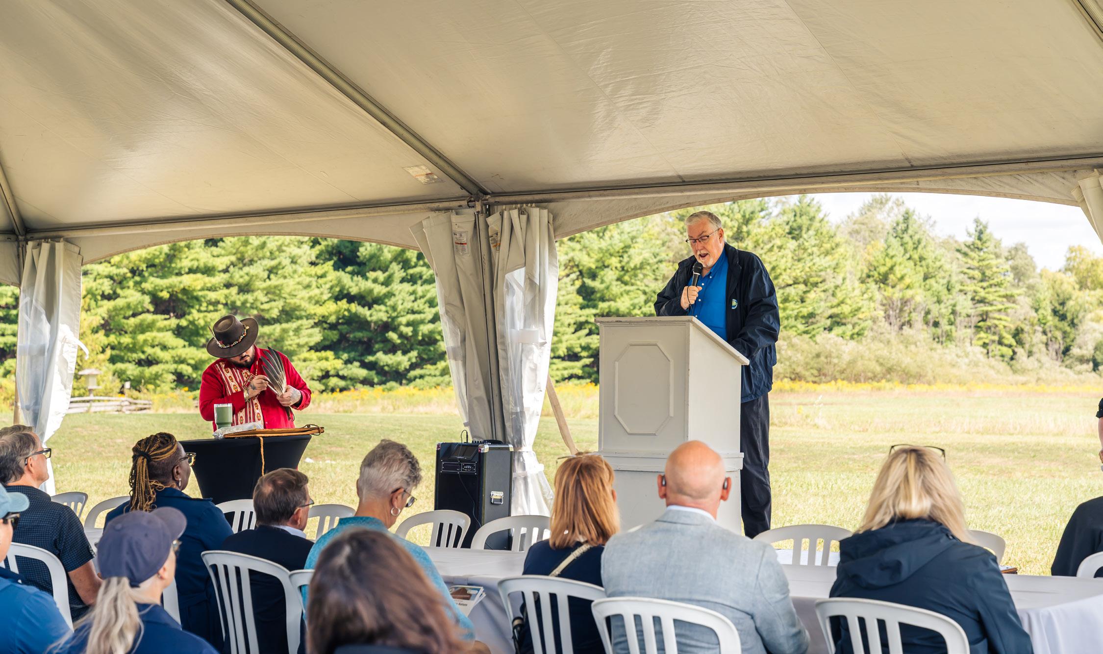 In front of the nature centre with GRCA CAO Samantha Lawson & GRCA Board Chair John Challinor II