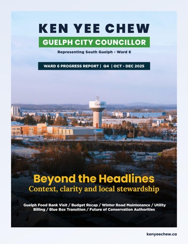 Context, clarity and local stewardship Guelph Food Bank Visit / Budget Recap / Winter Road Maintenance / Utility Billing / Blue Box Transition / Future of Conservation Authorities