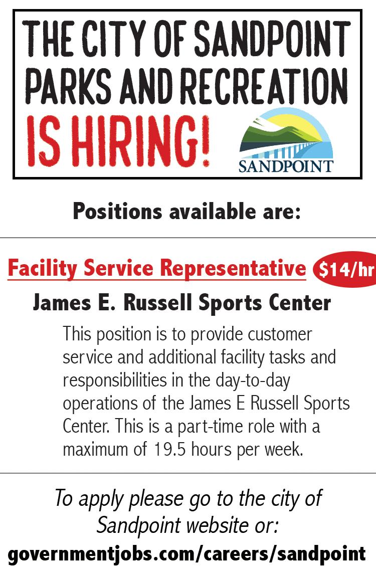 During his staff report at the beginning of the Dec. 4 meeting, Sandpoint Community Planning and Development Director Jason Welker said the city is still seeking qualified applicants for one or two more positions at the center, which is due to open for play on Monday, Dec. 16. The first public event will take place Friday, Dec. 13 with a free screening of Home Alone, which kicks off at 5:30 p.m. in the community room with cocoa and crafts, and the film showing at 7 p.m. on a 52foot screen.