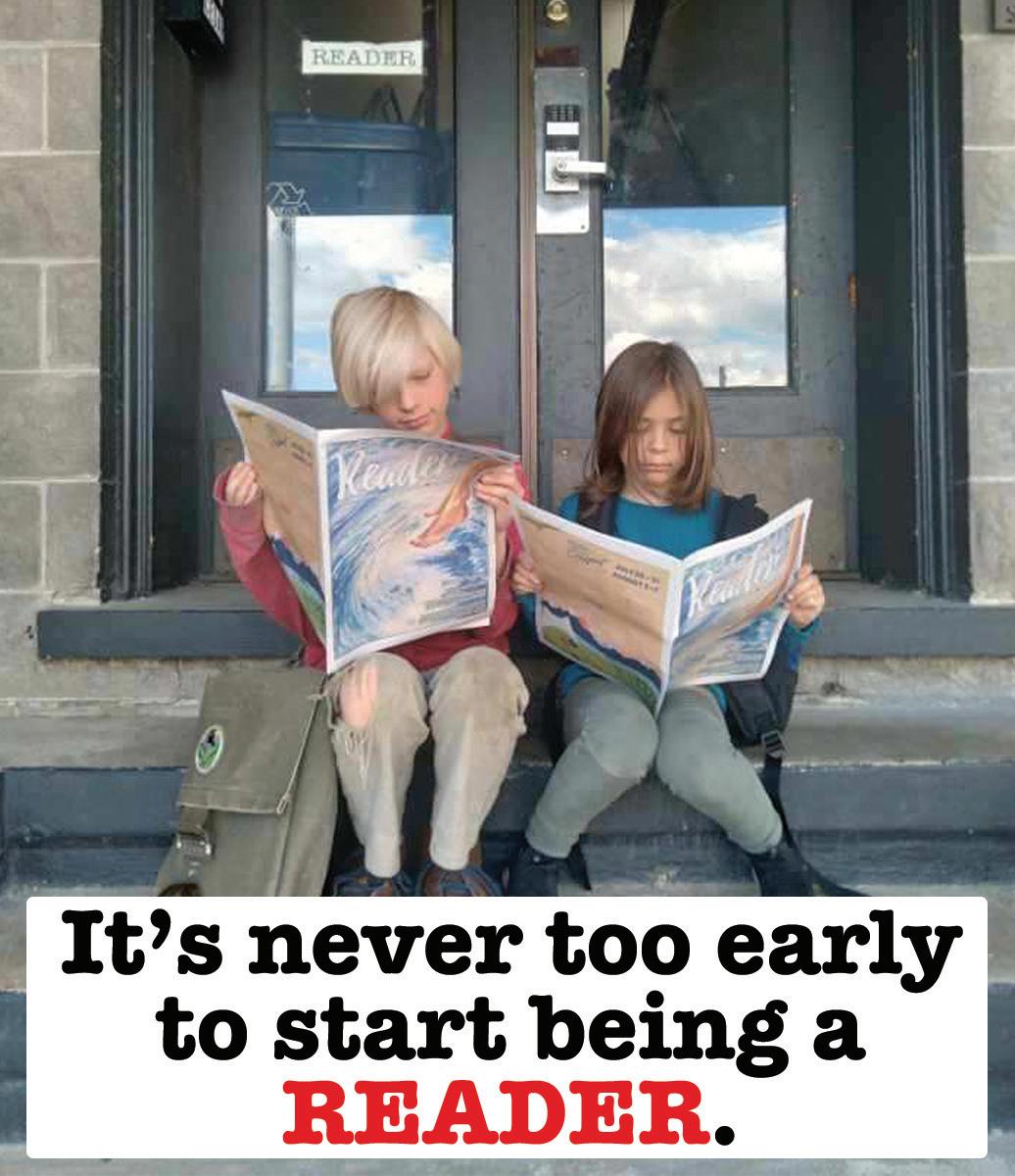 The Reader is printed on recycled paper using soybased ink. Leftover copies are collected and recycled weekly, or burned in massive bonfires to appease the gods of journalism. Free to all, limit two copies per person