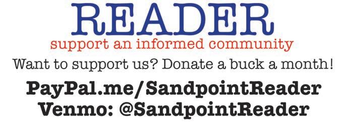 We welcome letters to the editor on all relevant topics. Please, no more than 200 words, no excessive profanity or libelous statements and no trolls. Please elevate the discussion and stay on topic. Letters will be edited to comply with the above requirements. Opinons expressed in these pages are those of the writers, not necessarily the publisher. Send to: letters@sandpointreader.com