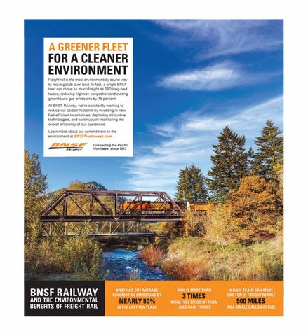 At BNSF Railway, we're constantly working to reduce our carbon footprint by investing in new fuel-efficient locomotives, deploying innovative technologies, and continuously monitoring the overall efficiency of our operations. Learn more about our commitment to the environment at BNSFNorthwest.com. RA/LWAY