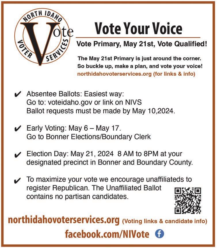 We’ll publish our usual candidate questionnaire in the April 18 and April 25 editions. These questionnaires include candidates from contested races in the Bonner County Commissioner and Bonner County Sheriff races, as well as Idaho Legislative races from District 1, including Senate, House Seat A and House Seat B races.