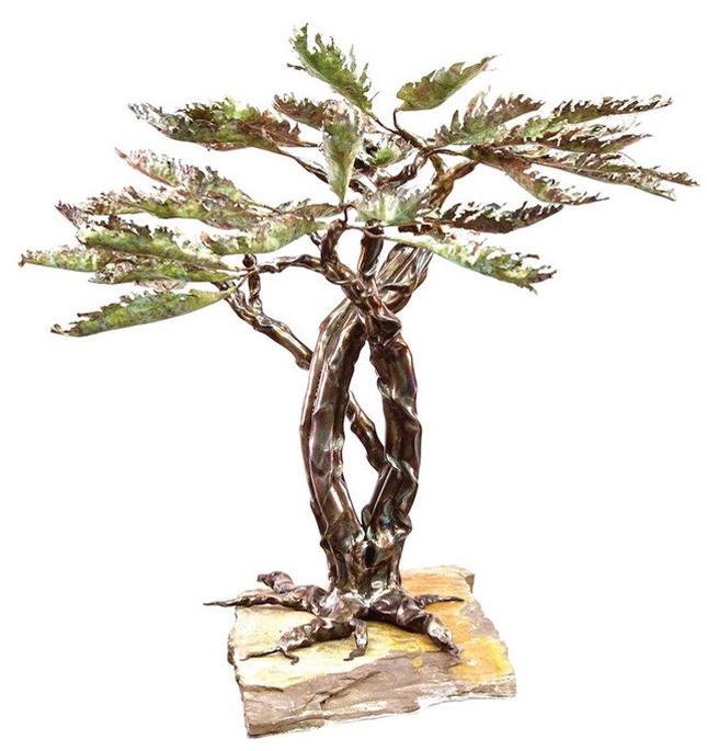 Gonzo’s work, “The Spirit Tree,” is a piece in steel, copper and stone representing, “the balance of masculine and feminine” and through its construction in steel “represents the strength and fortitude of the roots, trunk