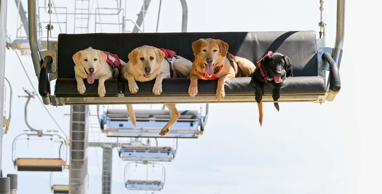 From top, clockwise: Maisie is just one of five dogs at Schweitzer who are ready to rescue. Schweitzer photo. The smash burger is well-loved at the Bank. Courtesy photo. Ben Olson performs at the Hive. Photo by Woods Wheatcroft. Take a ride with the dogs in Coolin. Courtesy photo. Schweitzer’s market offers views galore. Photo by Loren Media Group.
