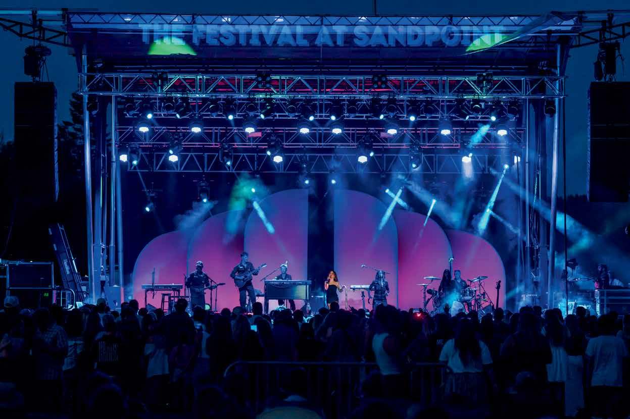 Live music and more is available at the Hive, right in the heart of downtown on First Avenue. Check the calendar for electrifying concerts, along with nonprofit and educational speakers, special celebrations, and more. It’s a small, intimate venue with a powerful punch. Also available for private events. 208920-9039 www.livefromthehive.com. With live music, theatrical performances, fundraisers, and more is the Heartwood Center, 615 Oak St., located in one of the area’s premiere historical buildings, the former Catholic church. Check the calendars for current performance information. 208-263-8699. www.heartwoodsandpoint.com. The Music Conservatory of Sandpoint hosts events yearround in a performance space designed for sound and featuring what may be the only Bosendorfer grand piano in the Pacific Northwest in its Little Carnegie Concert Hall. For an evening’s entertainment on the classical end of the scale, it’s hard to beat. 208-265-4444. www.sandpointconservatory.com.
