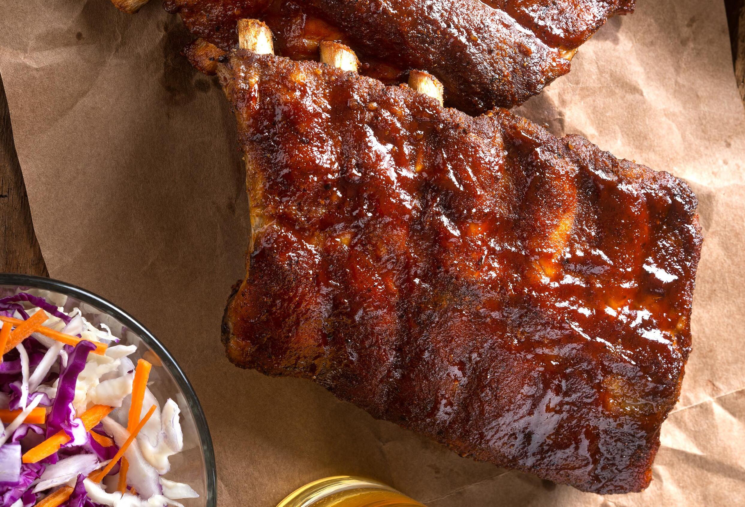 Juicy mini pork ribs smothered in a deliciously moreish sweet and smoky BBQ sauce.